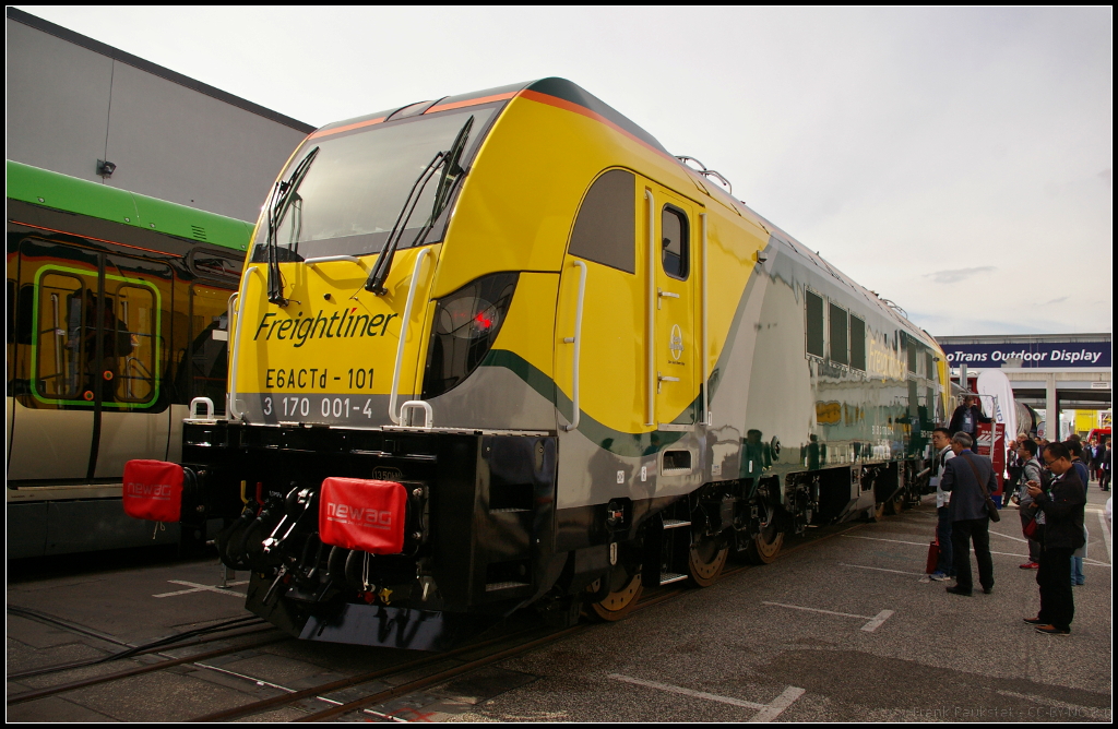 InnoTrans 2016 in Berlin: Der polnische Hersteller Newag war mit der E6ACTd ("Dragon"), die bei Freightliner im Dienst ist, auf der Messe in Berlin vertreten (NVR-Nummer 91 51 3 170 001-4 PL-NEWAG)
