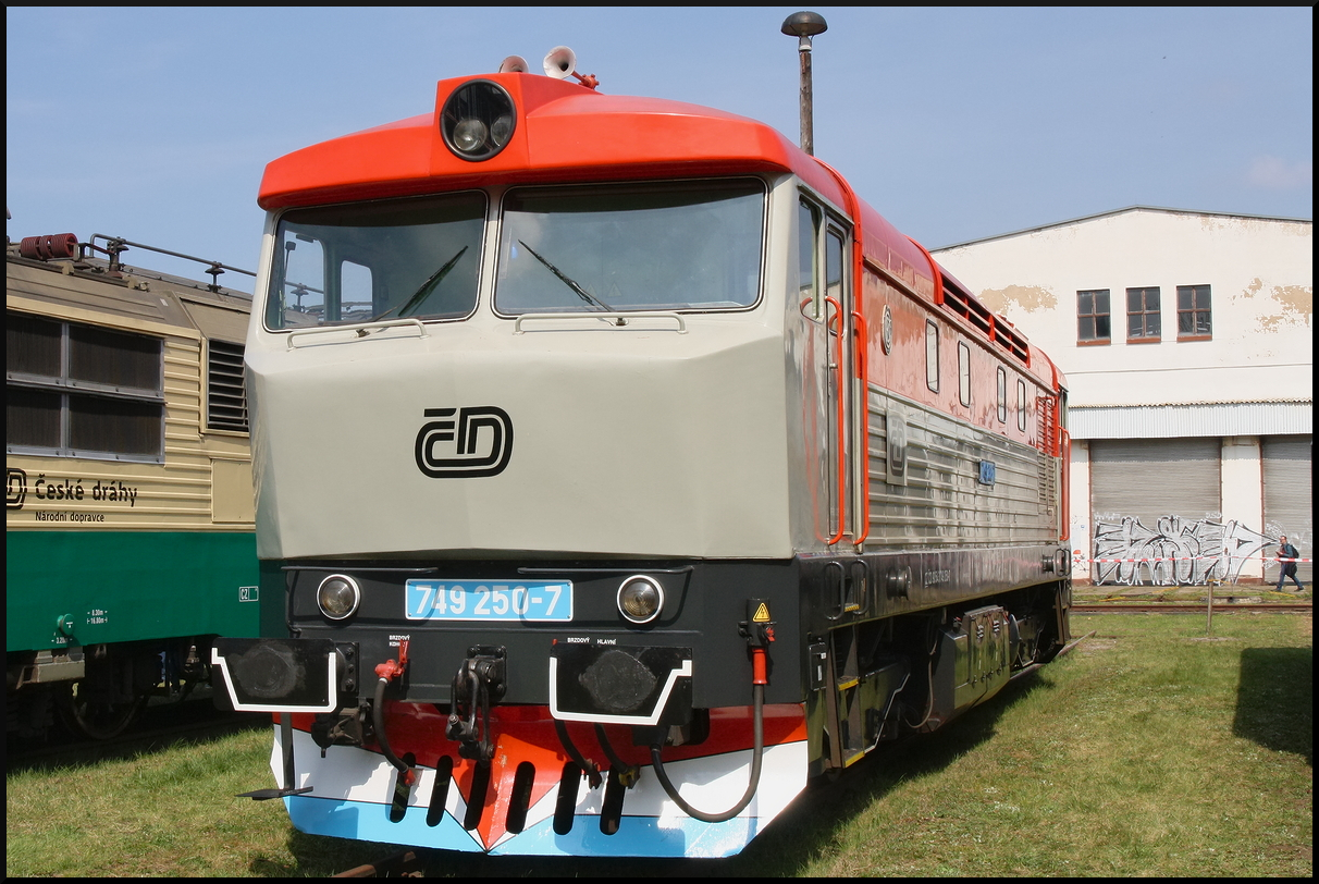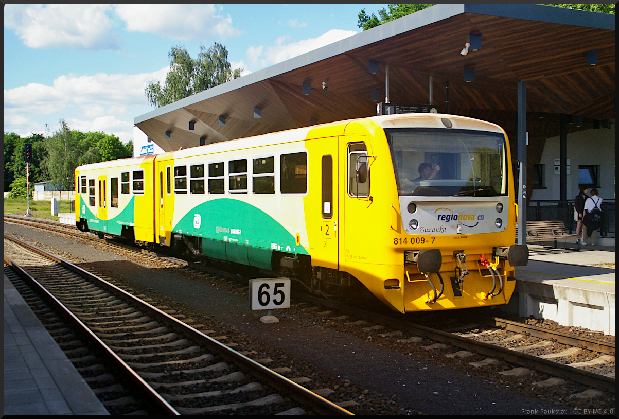 ČD 843 010 fuhr als S-Bahn in den Bahnhof Chlumec nad Cidlinou ein (Bild durch die Scheibe).