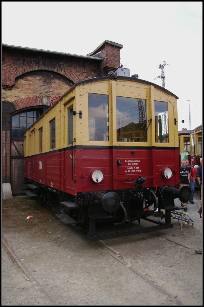 Vor Tor 10 des Haus 4, halb im Schatten, zeigte sich DR ET 188 521 Dre den Besuchern des 17. Dresdner Dampfloktreffen 2025. Der alte Triebwagen wurde gerne fotografiert und auch bestaunt, so das ein Bild ohne Personen fast unmöglich war. "Bahn und Menschen" gehören zusammen. Das Bild entstand am 12.04.2025 während des Besuchs vor Ort.