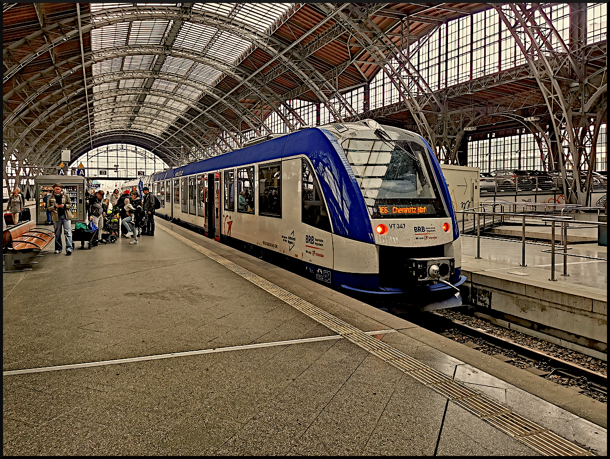 Als  Dampfloktreffen  im Display war DB Regio 442 311 im Leipziger Hbf eingetroffen. Nach Dresden Hbf wurde die Anzeige dann auf RB50 geändert. Seit einiger Zeit setzt DB Regio statt Lokbespannter Doppelstock-Züge nur drei- oder fünfteilige Talent ein, was zu sehr beengten Platzverhältnissen führt, da diese Regiolinie eine Pendlerlinie zwischen Dresden und Leipzig ist. Am 12.04.2025 war aufgrund des Andrangs noch Zeit ein Bild  Bahn und Menschen  zu machen.