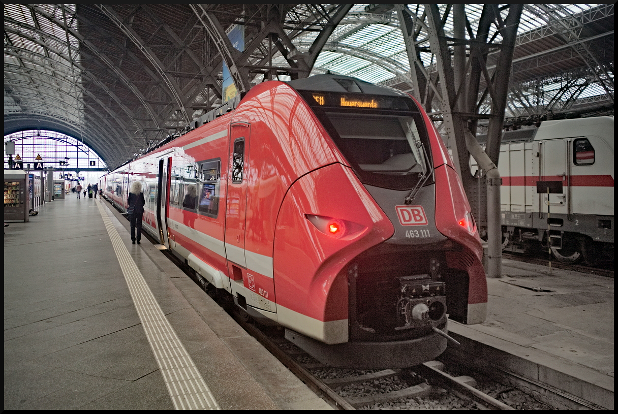 DB Regio 463 111 wartete am Gleis 9 als RE11 / 18186 Hoyerswerder als hinterer Zugteil auf letzte Fahrgäste (Leipzig Hbf, 11.02.2024, NVR-Nummer 94 80 0463 111-5 D-DB)