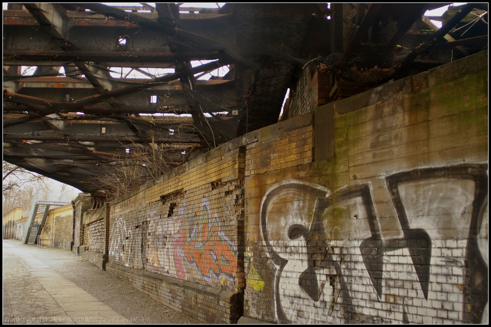 Blick auf den S-Bahnhof Berlin Humboldthain und rechts auf die ehemaligen Anschlussgleise des Güterbahnhofs Eberswalder Straße.