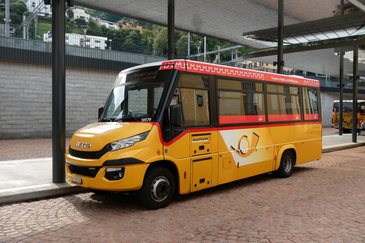 (280'317) - AutoPostale Ticino - TI 272'094/PID 10'197 - Iveco/Rosero am 13. September 2025 beim Bahnhof Castione-Arbedo