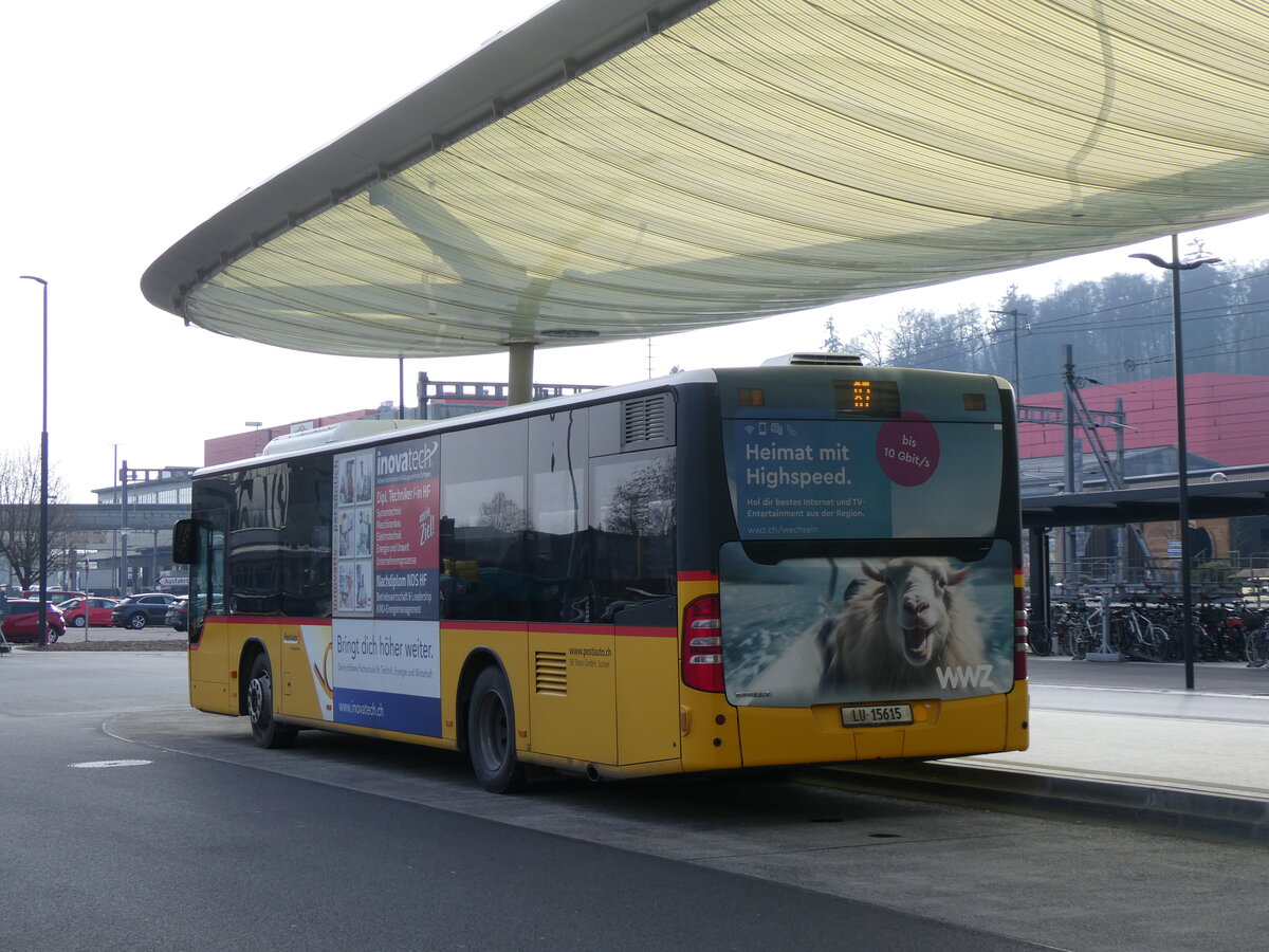 (224'798) - SB Trans, Sursee - Nr. 18/LU 15'067 - Solaris (ex Nr. 43) am 5. April 2021 beim Bahnhof Alpnachstad