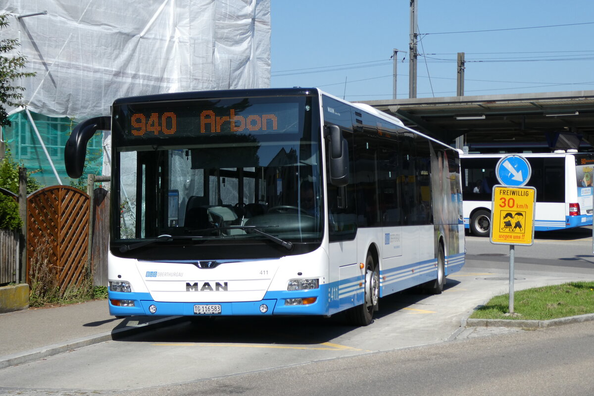 (261'869) - BOTG Amriswil - Nr. 401/TG 229'373 - Neoplan (ex Nr. 8) am 2. Mai 2024 beim Bahnhof Romanshorn