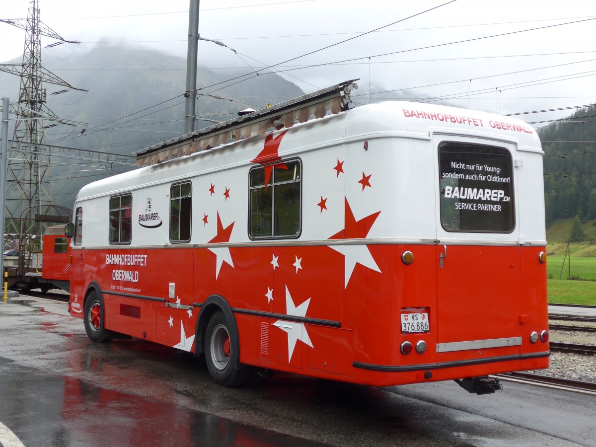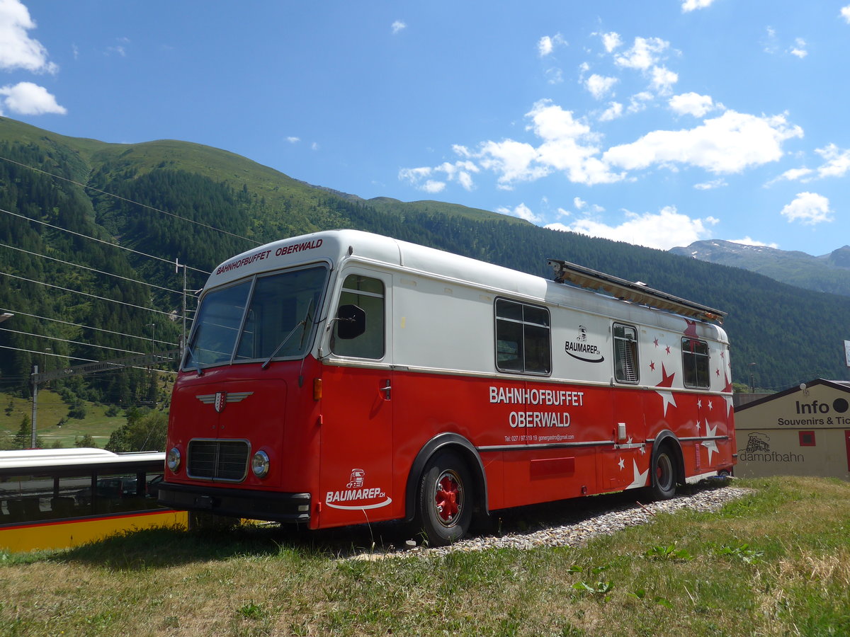 (195'307) - Bahnhofbuffet, Oberwald - FBW/Hess (ex Schirmbildwagen, Solothurn) am 29. Juli 2018 beim Bahnhof Oberwald