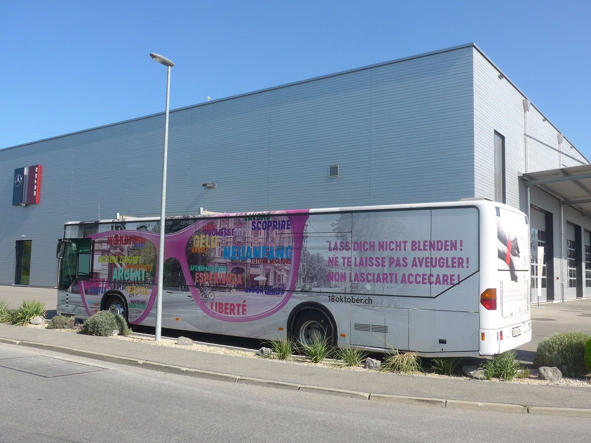(210'252) - Internationale Organisation für Migration, Bern - BE 611'470 - Mercedes (ex MBC Morges) am 12. Oktober 2019 in Kerzers, Interbus Markus Doyon
