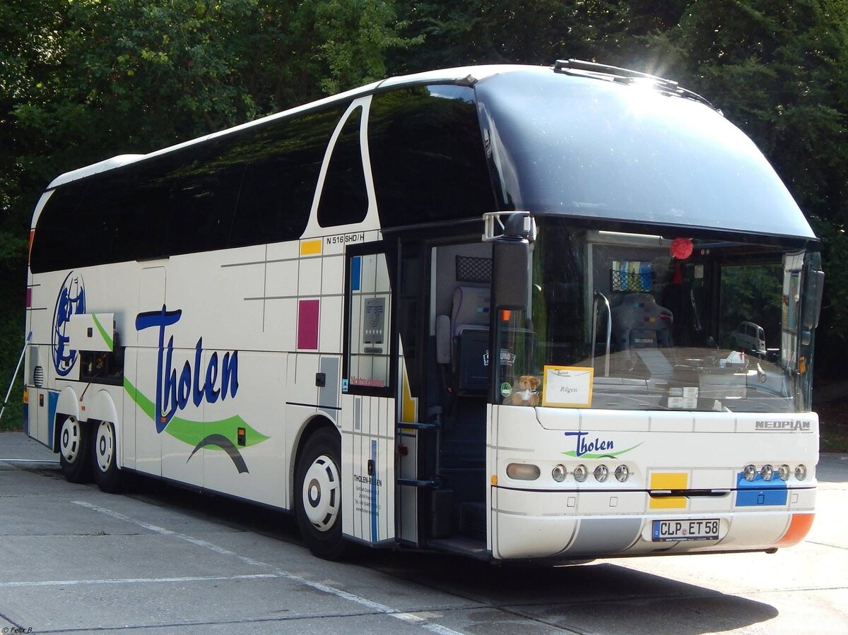 Neoplan Starliner von Postauto aus der Schweiz im Stadthafen Sassnitz.