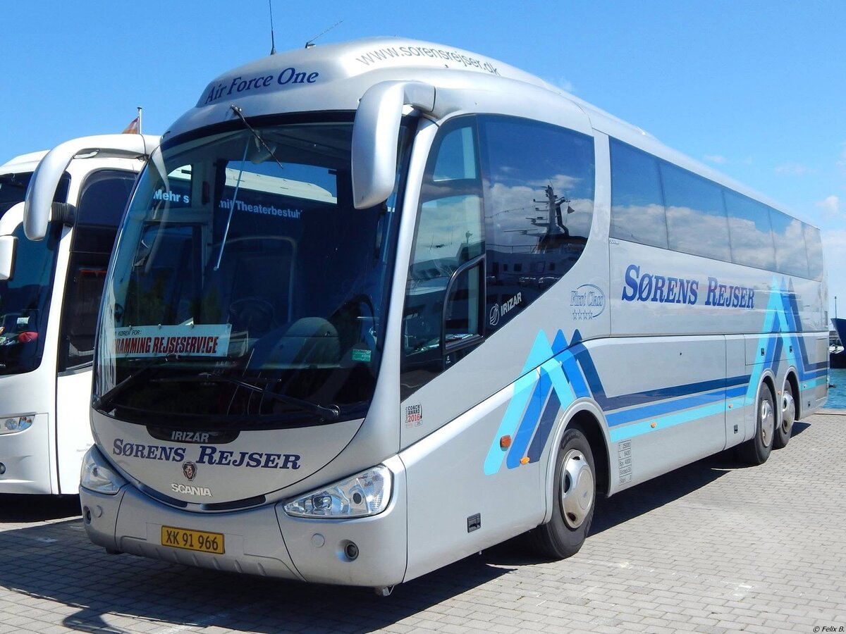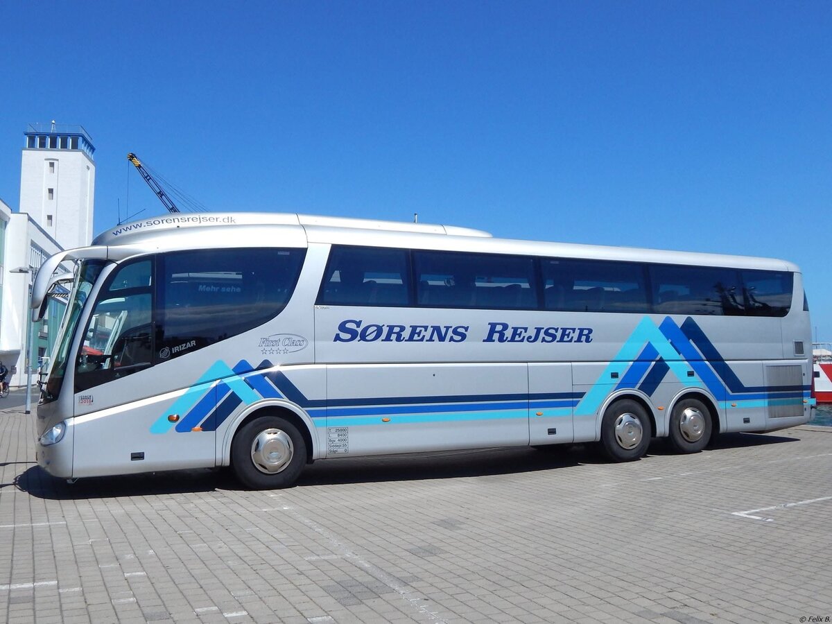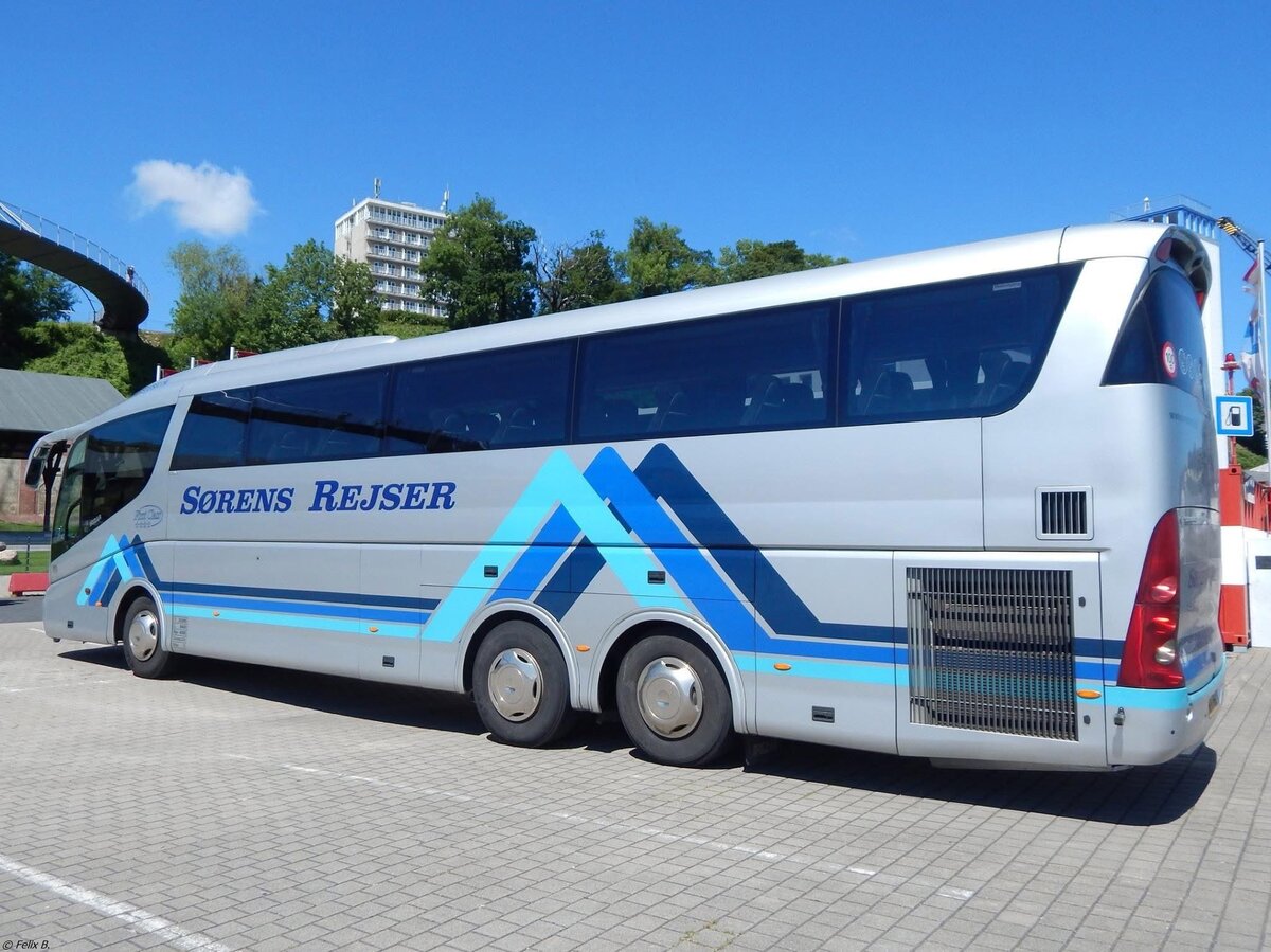 Scania Irizar von Sørens Rejser aus Dänemark im Stadthafen Sassnitz.