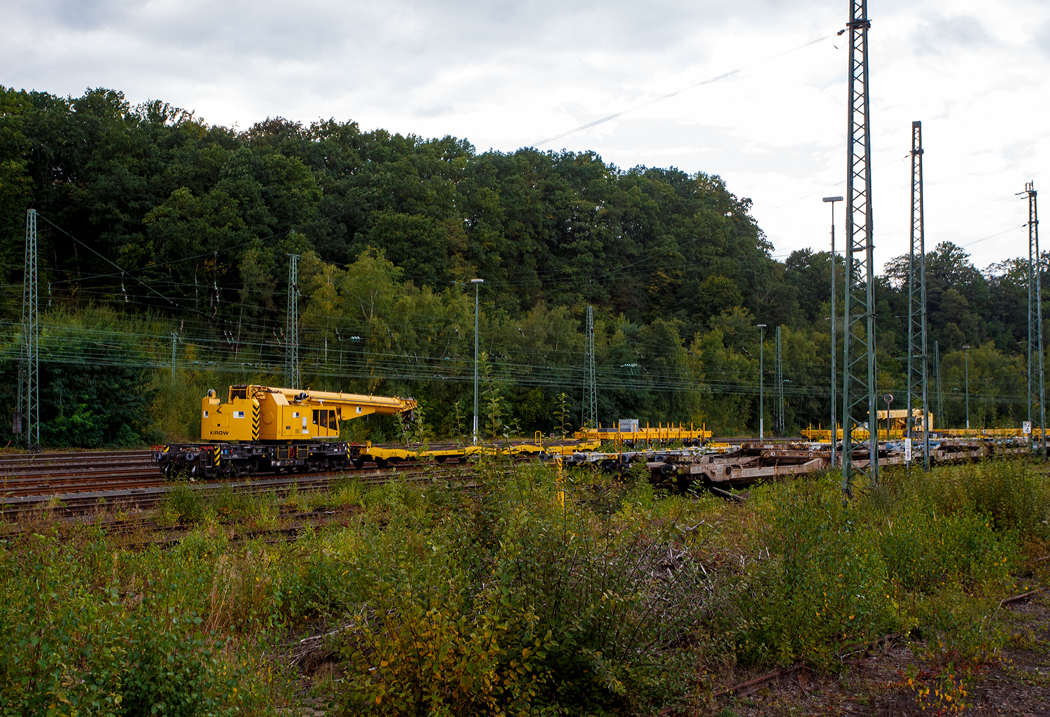 Muldenkippwagen (RS Wagen mit jeweils 3 Kippmulden für Schüttguttransporte), 33 80 3993 111-2 D-JH, der Joseph Hubert GmbH & Co. KG / Hubert Bahnbau GmbH (Nürnberg), beladen mit Schotter abgestellt am 20.09.2022 in Betzdorf/Sieg.