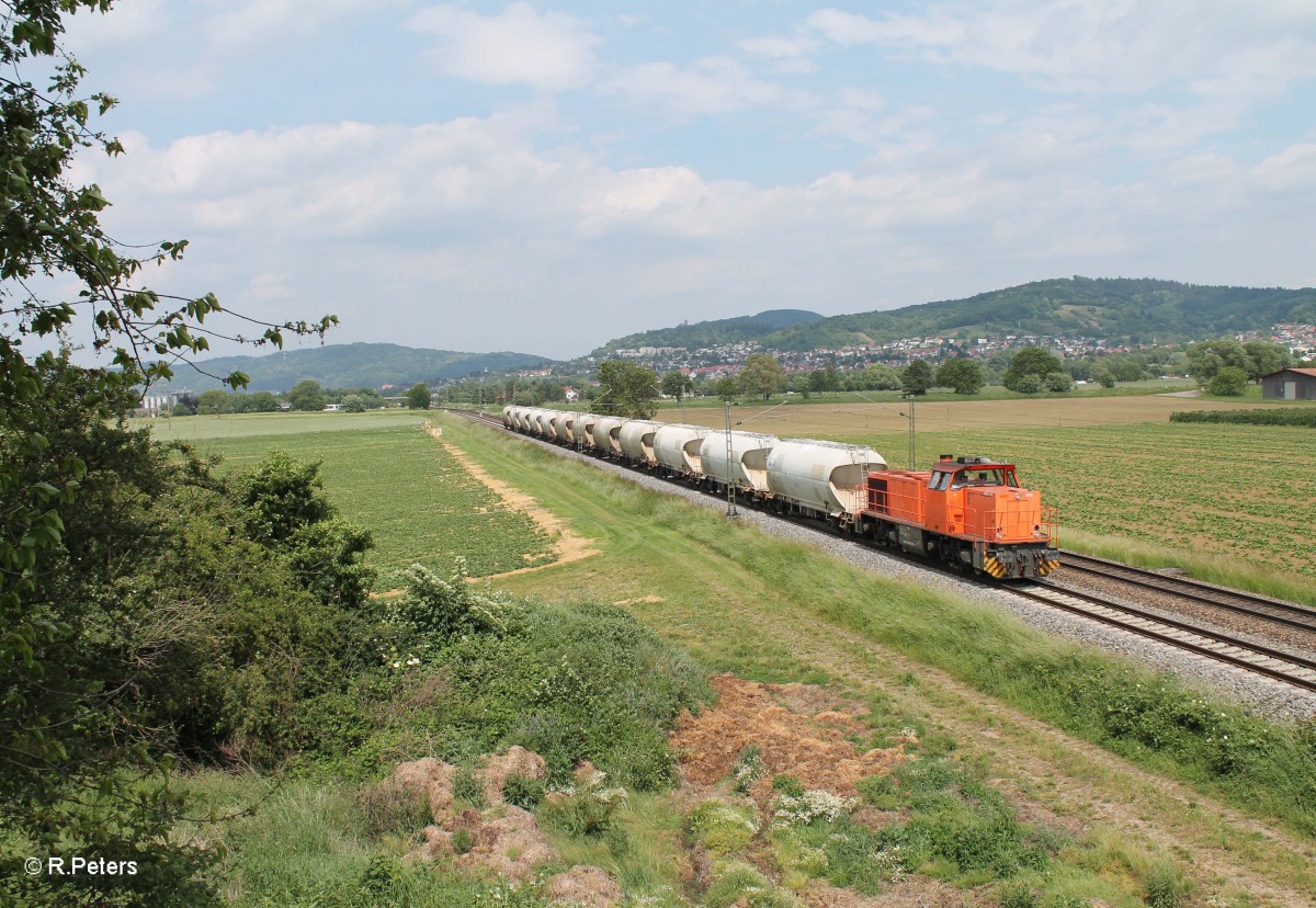 Eine unbekannte MaK 1206 mit Staubbehälterzug bei Großsachsen-Heddesheim 28.05.15