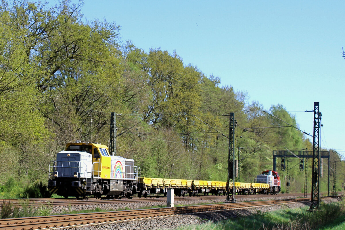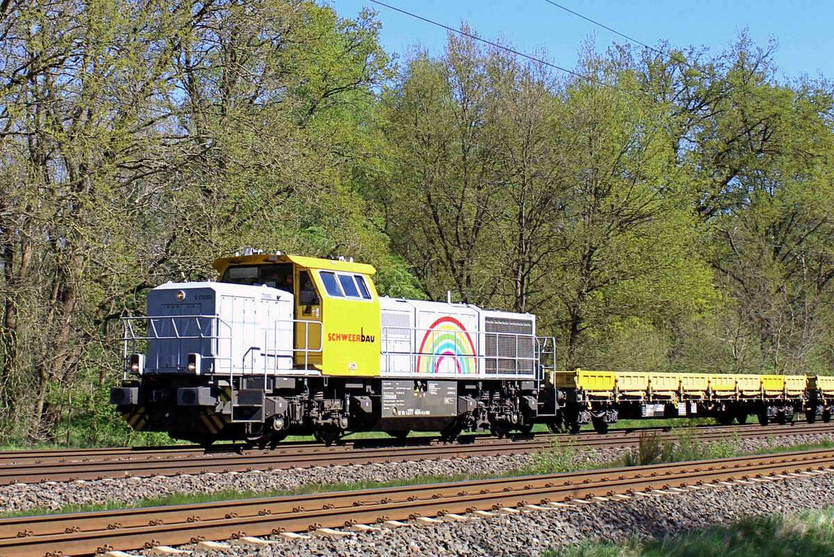 V 1700.02 (277 102-0) SETG - Salzburger Eisenbahn TransportLogistik GmbH mit einem leeren Holzzug, bei der Schnee aufwirbelten Durchfahrt in Rathenow und fuhr in Richtung Wustermark weiter. 22.01.2014