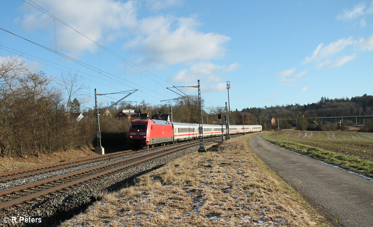 101 028-9 schiebt den RE 4011 Nürnberg - München (NIM München Nürnberg Express) bei Fahlenbach. 21.10.17