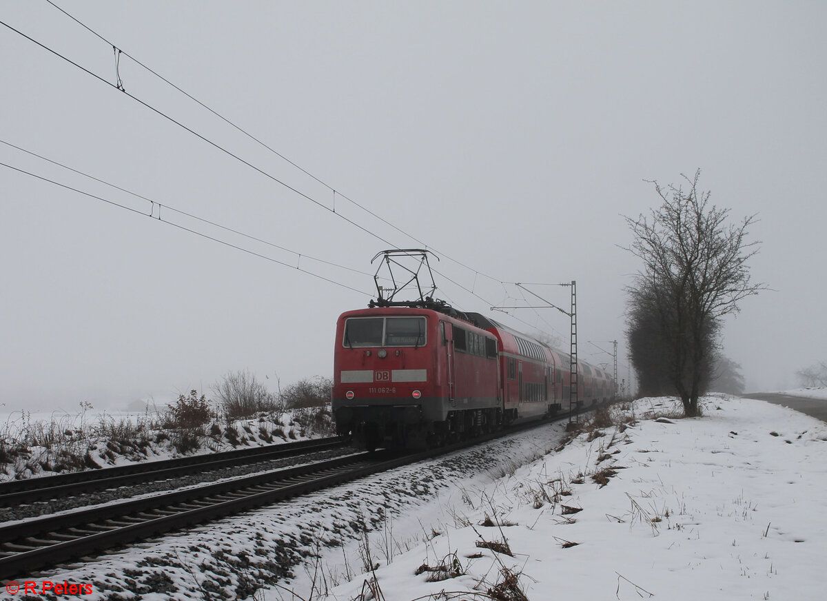 Nachschuss auf 111 062-6 die im Sandwitch den RE50 Nürnberg - Regensburg - München bei Pölling schiebt. 09.12.23