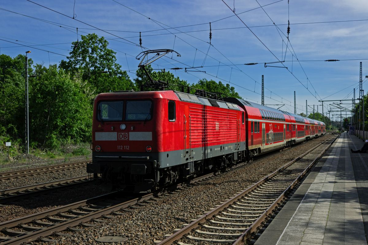 Beton, Glas und unübersichtliche Wege, die großenteils wohl zu einem nie realisierten Parkdeck gehören und nicht genutzt werden, wie besipielsweise die Treppe links neben dem Steuerwagen kennzeichnen den Bahnhof Berlin Südkreuz. 112 118 ist mit einem RE5 auf dem Weg nach Lutherstadt Wittenberg, während der mit einer giftgrünen Matrixanzeige ausgerüstete Steuerwagen links zu einem RE3 nach Schwedt (Oder) gehört.