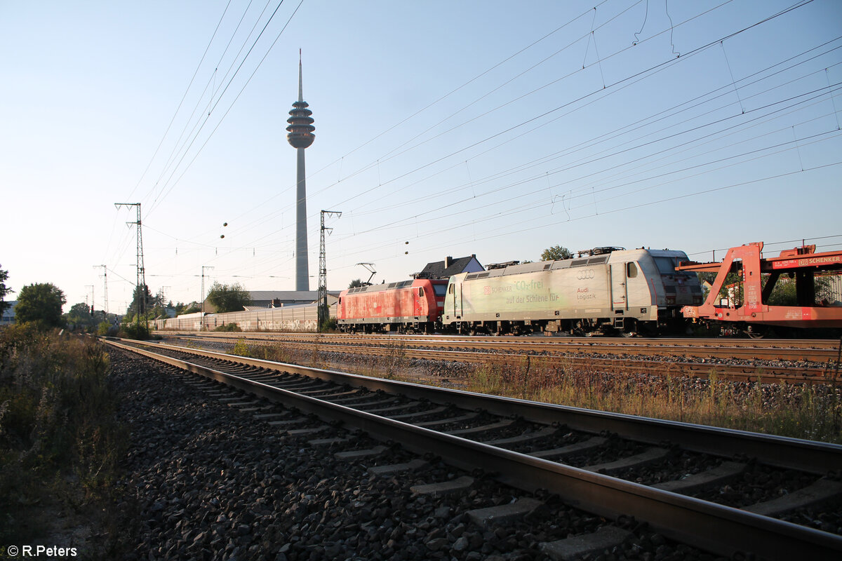Nachschuss auf 145 036-0 und 185 389 mit einem gemischten Güterzug in Nürnberg Hohe Marter. 21.09.24
