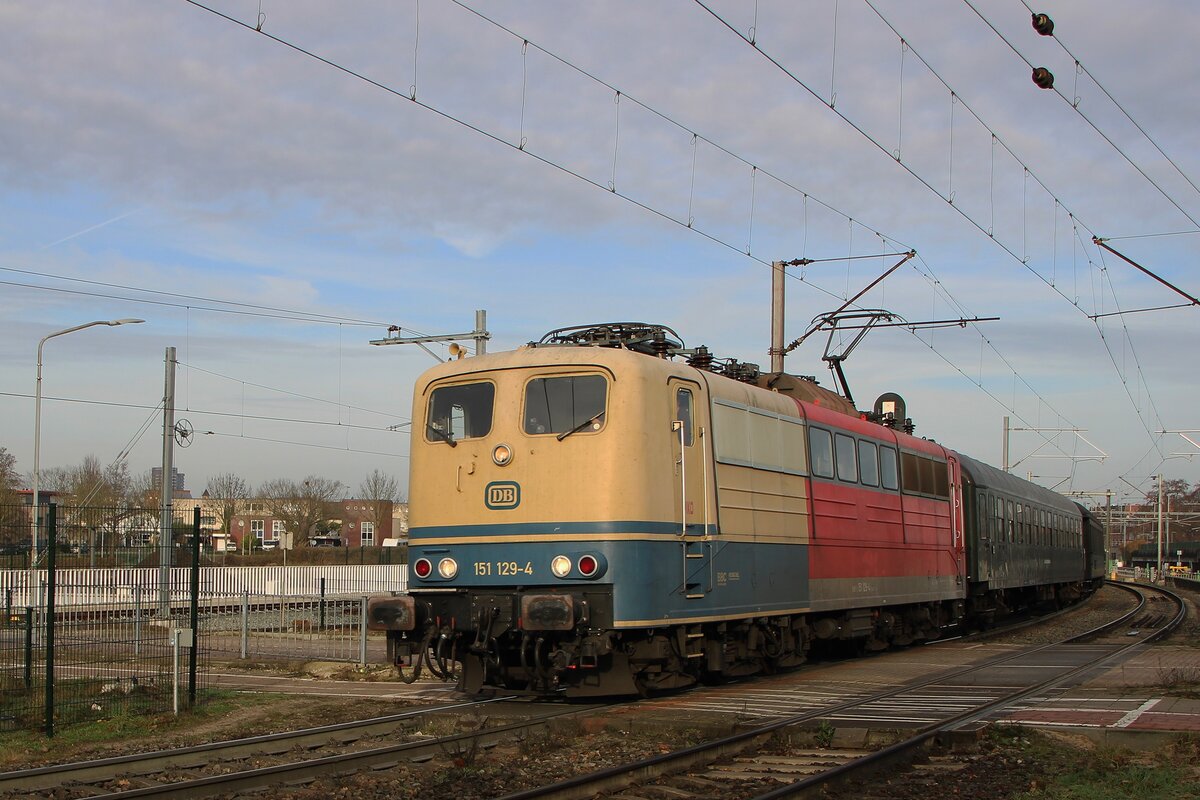 Am 20 Dezember 2025 zieht KonRail 151 129 ein Sonderzug nach Bonn durch Venlo-Vierpaardjes und wird vom offenbarer Radwqeg fotografiert. Leon Schrijvers