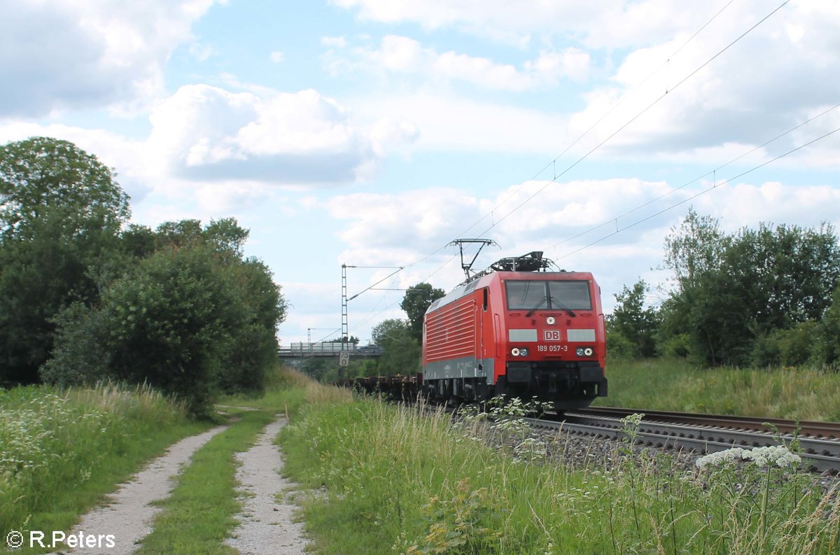189 057-3 zieht bei Postbauer-Heng ein leeren Containerzug aus 2 achser. 03.07.20