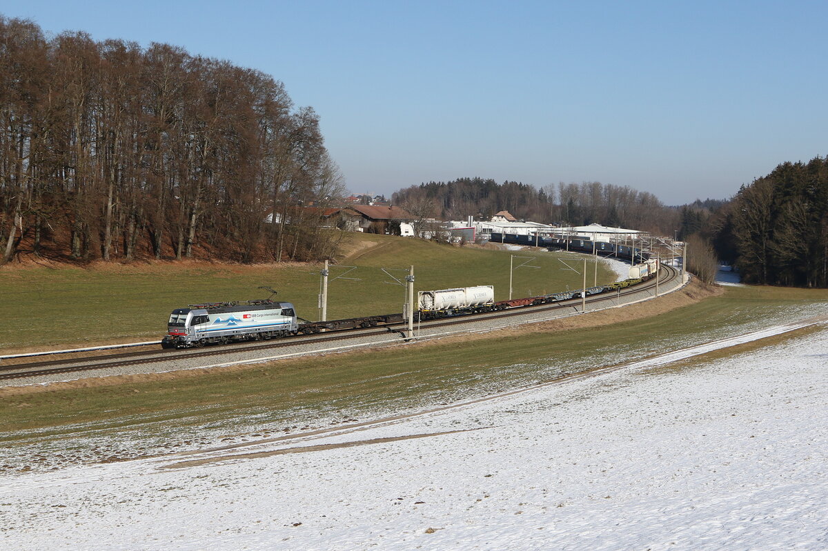 193 517 mit einem "KLV" am 21. Juli 2021 bei Kaub am Rhein.