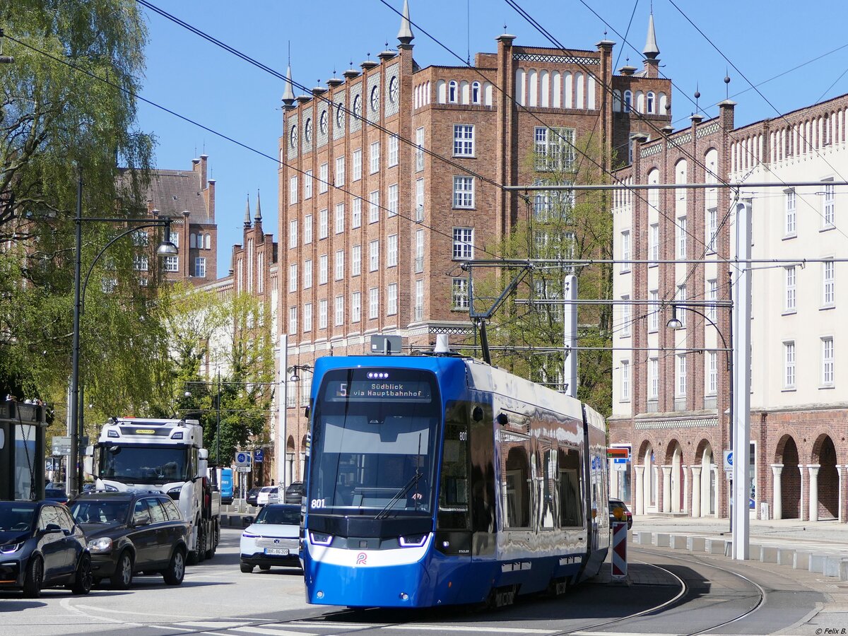 Tina Nr. 801 der Rostocker Straßenbahn AG in Rostock.