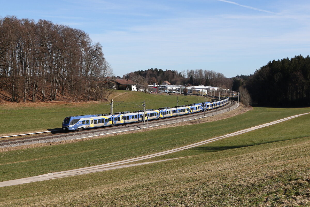 ET 301 war am 24. Januar 2022 bei Grabenstätt im Chiemgau in Richtung München unterwegs.