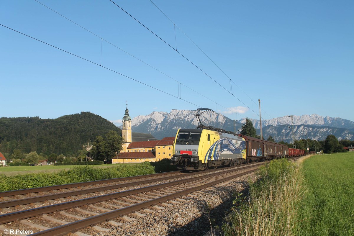 189 912 "Cream" zieht mit einem Stahlzug am Kloster Reisach bei Niederaudorf vorbei in Richtung München. 13.17.18