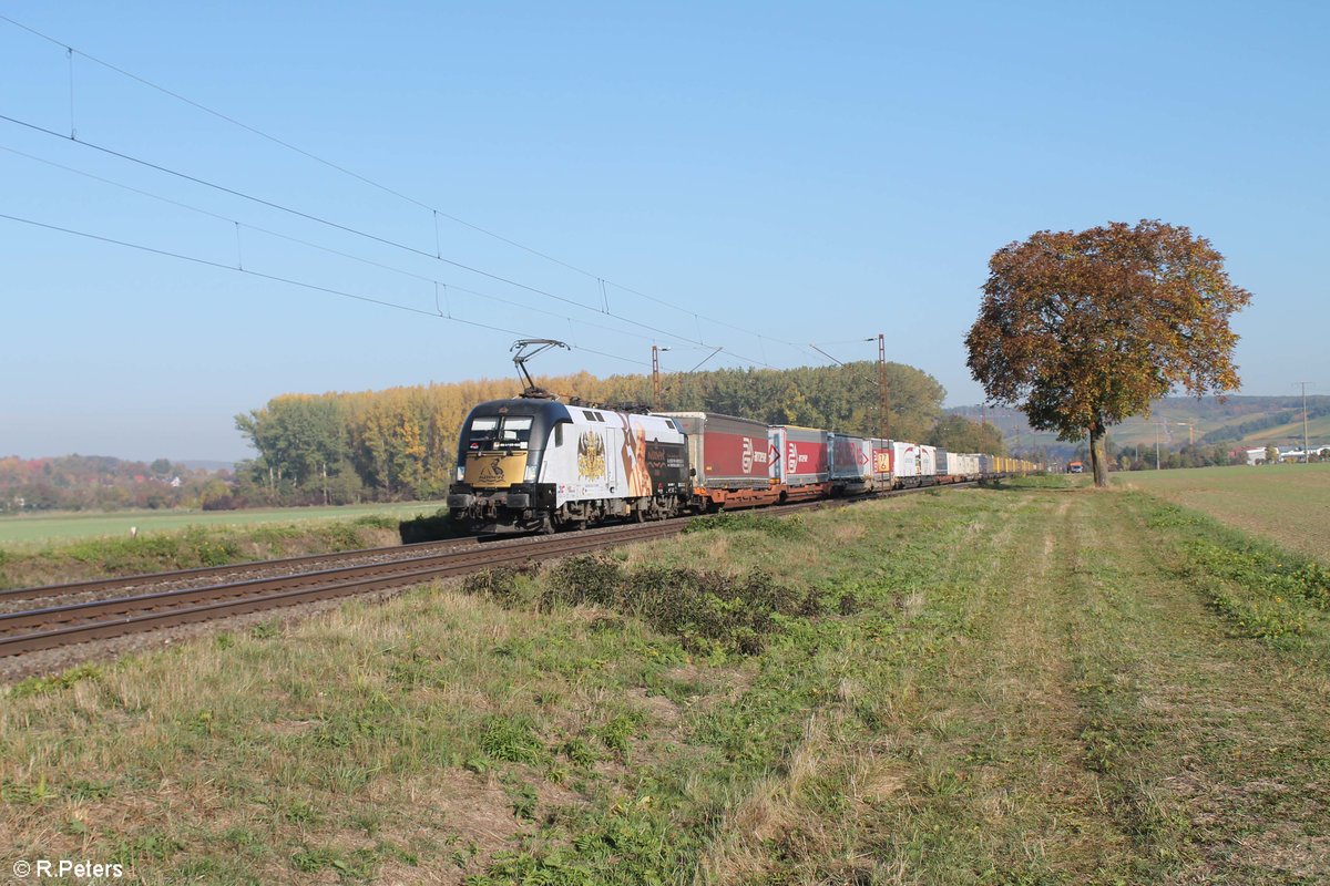 ES64 U2 023 alias 182 523 zieht den DGS 43109 Hannover Linn - Veronas Q.E. kurz vor Retzbach-Zellingen 13.10.18