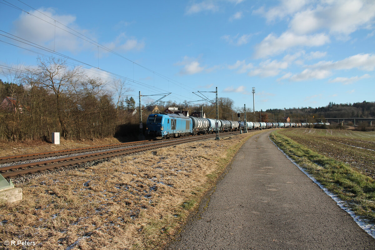 192 046 zieht ein Kesselzug bei Kesselfeld in Richtung Würzburg. 12.01.25