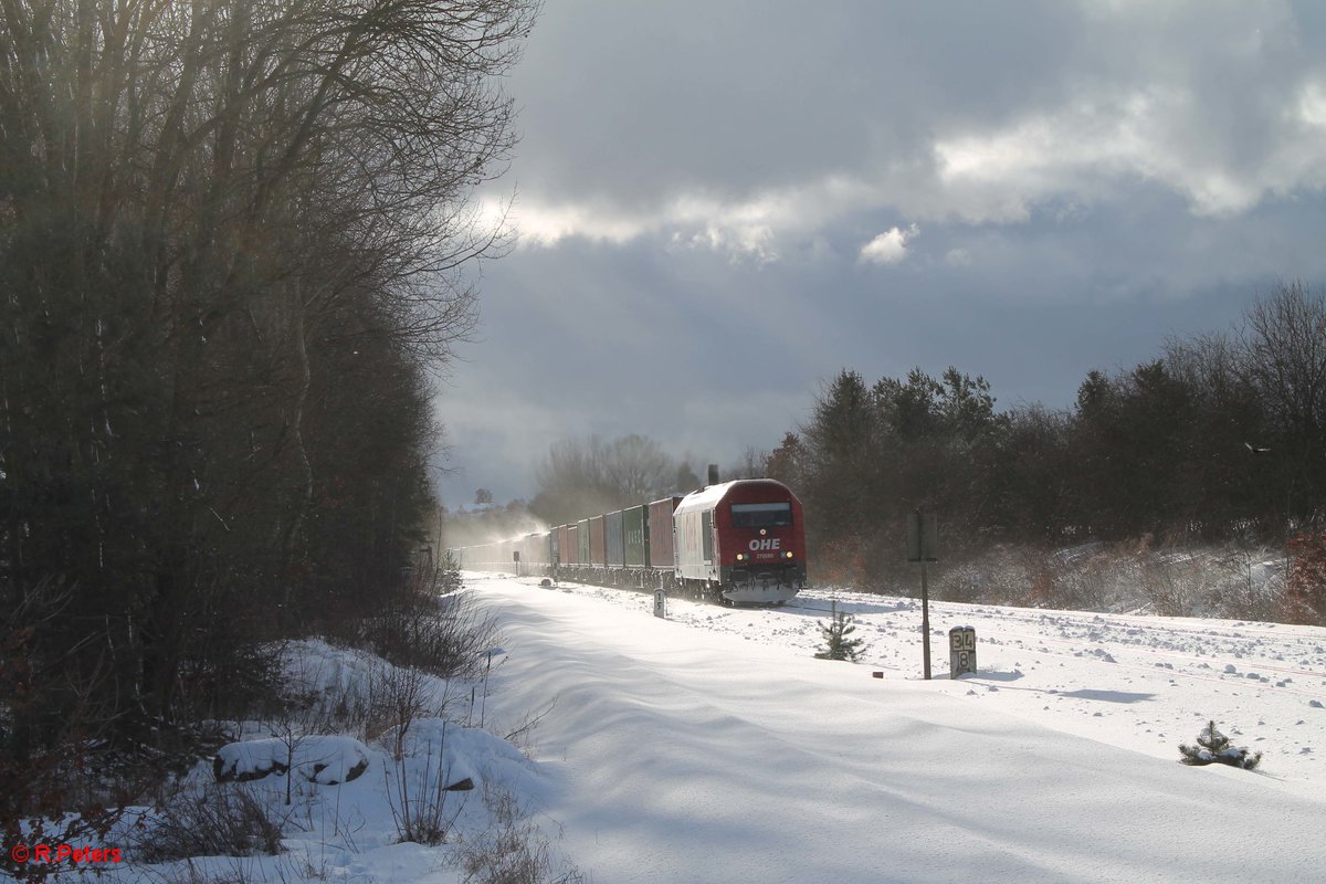 Nachschuss auf 270080 alias 223 101 zieht bei Schönfeld den Wiesau Containerzug nach Hof. 14.01.17