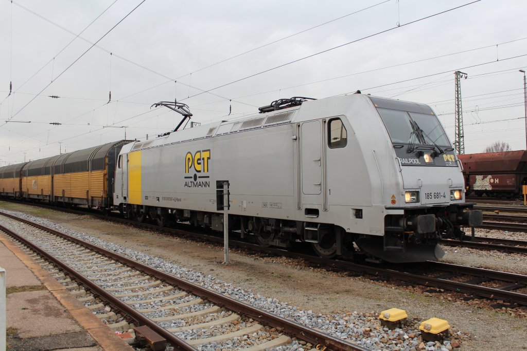 223 155 von "PCT-Altmann" mit einem leeren Autozug am 17. August 2017 bei Langwedel.