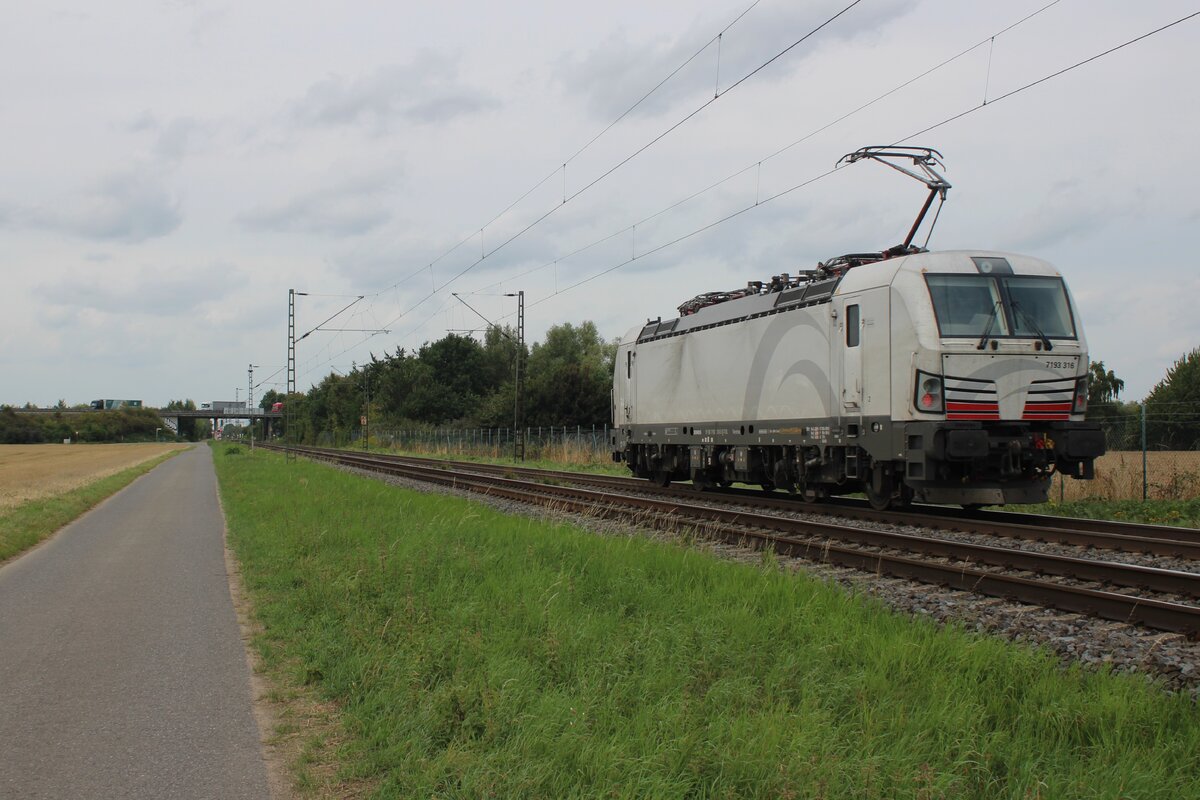Die TXL eigene SIEMENS Vectron der TX Logistik AG, bisher hatte diese nur Loks angemietet. Die recht neue weiße TXL 7193 322 „Connected to Nature“ (91 80 7193 322-3 D-TXL) der TXL - TX Logistik AG (Troisdorf) fährt am 28 Juli 2025, mit einem KLV-Zug, durch den Bahnhof Kirchen (Sieg) in Richtung Betzdorf bzw. Köln.