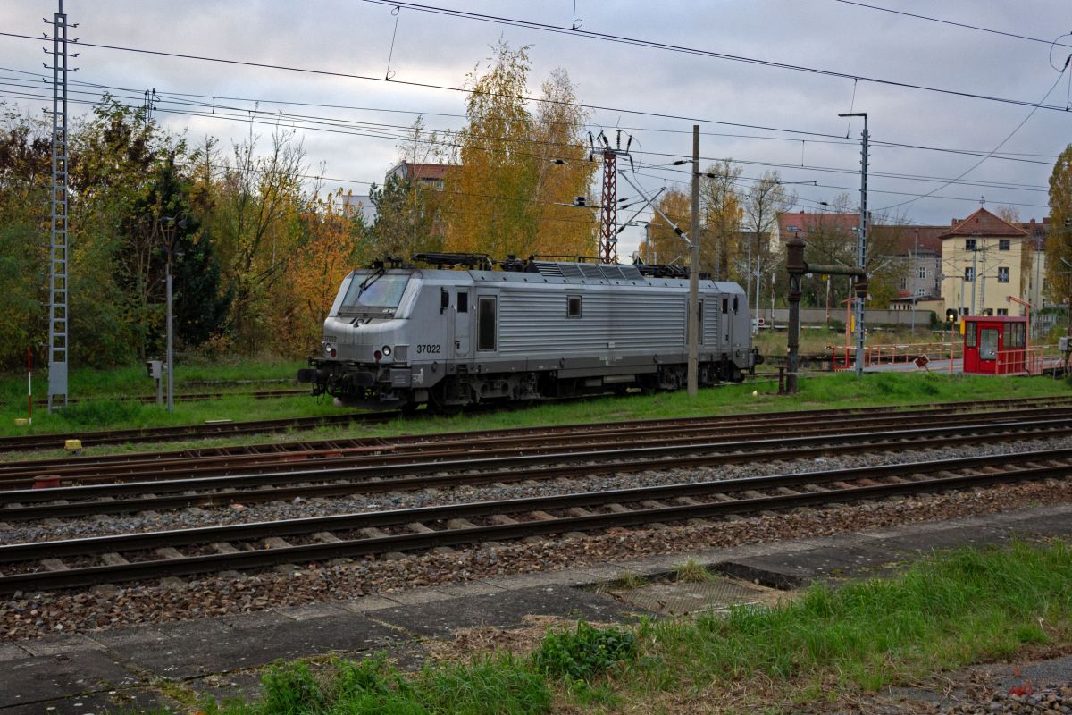 Die Captrain-Prima E 37 528 mit einem Tankwagenganzzug am Abzweig Azmannsdorf, 8.7.15