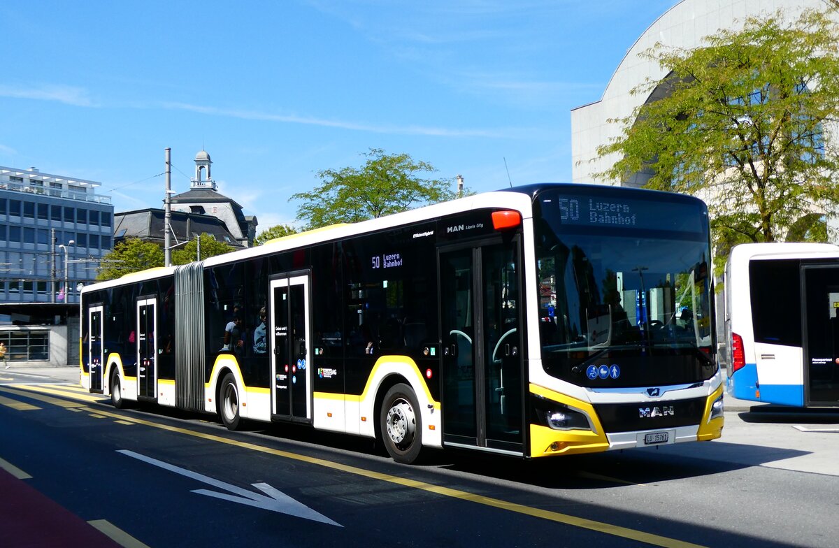 (203'036) - VBL Luzern - Nr. 227 - Hess/Hess Gelenktrolleybus am 23. März 2019 in Luzern, Bahnhofbrücke