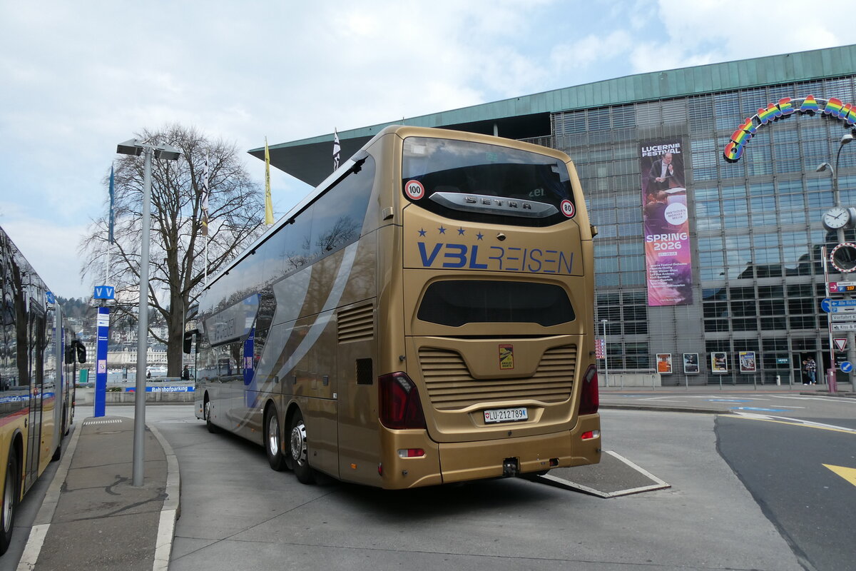 (285'697) - VBL Luzern - Nr. 201 - Hess/Hess Gelenktrolleybus am 23. März 2026 in Luzern, Bahnhofbrücke