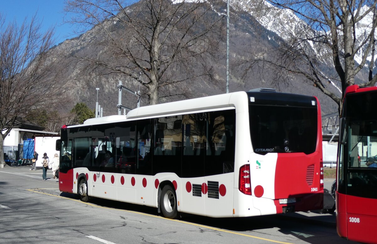 (285'056) - TPF Fribourg - Nr. 1041/VS 603'527 - Mercedes am 24. Februar 2026 beim Bahnhof Martigny (Einsatz TMR)