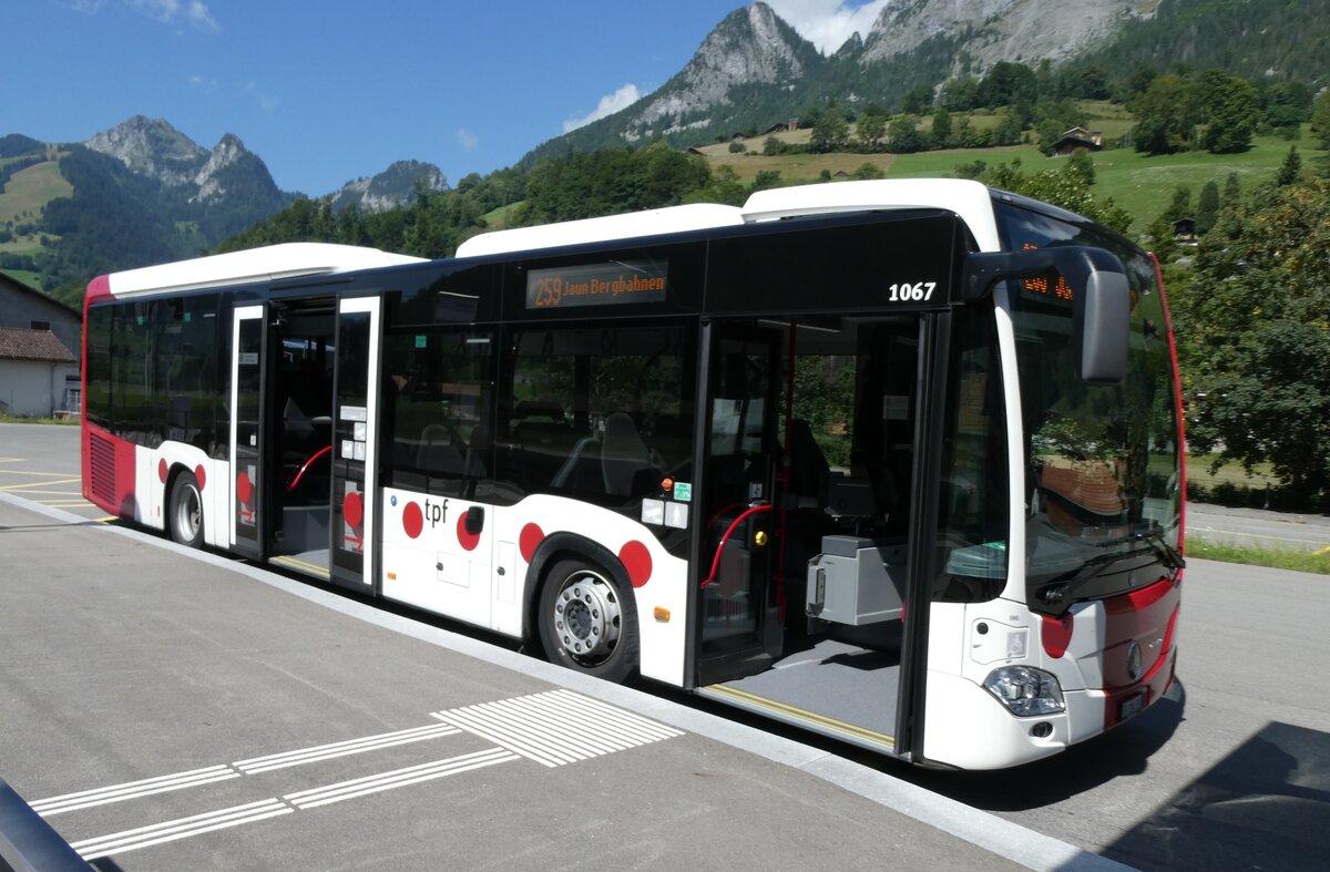 (278'600) - TPF-Fahrplan ab Boltigen, Bahnhof nach Jaun, Bergbahnen am 7. August 2025 beim Bahnhof Boltigen