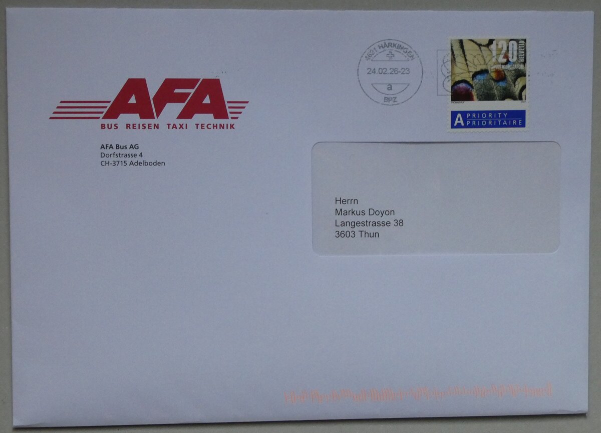 (255'802) - Castell-Briefumschlag am 2. Oktober 2023 in Thun