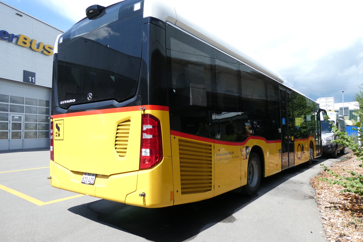 (278'388) - CarPostal Ouest - VD 610'425/PID 10'606 - Mercedes (ex Faucherre, Moudon) am 2. August 2025 in Kerzers, Interbus
