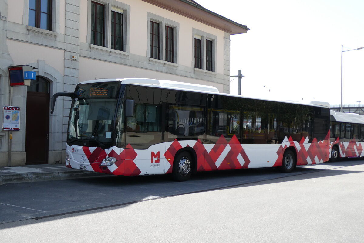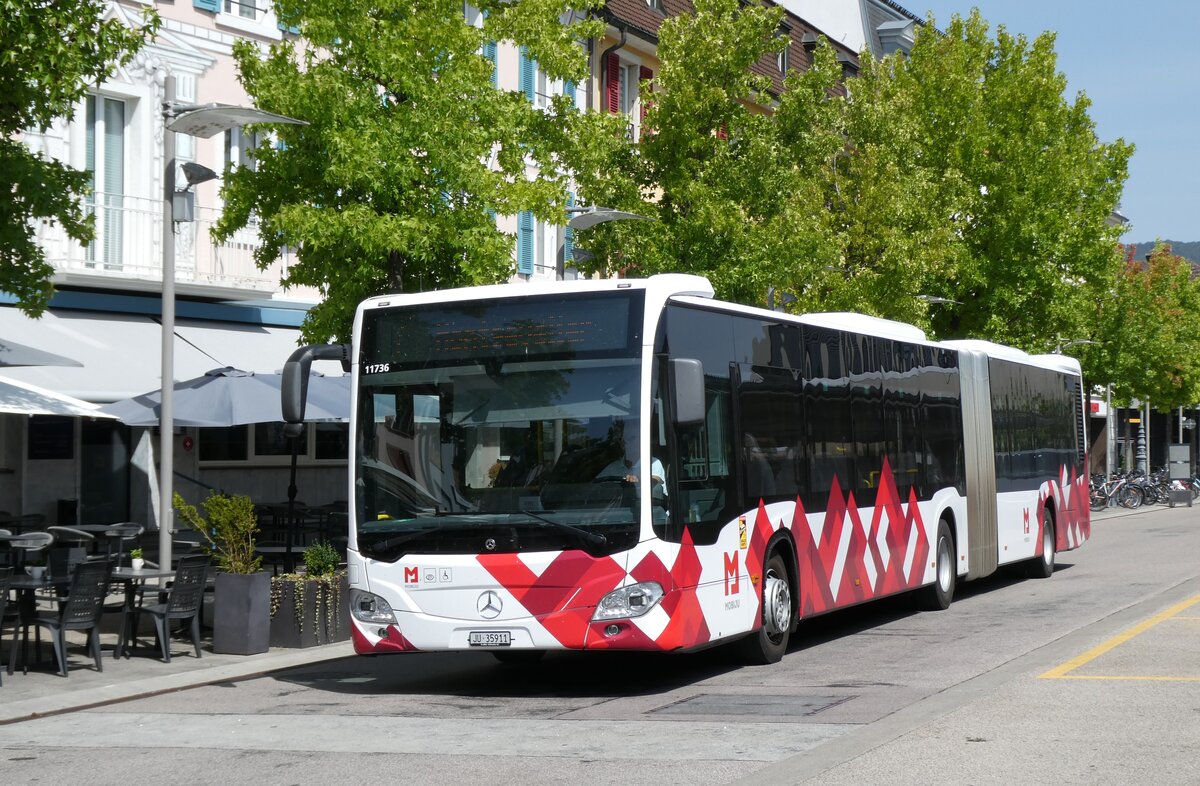 (278'681) - CarPostal Ouest - JU 36'566/PID 11'752 - Solaris am 9. August 2025 beim Bahnhof Delémont