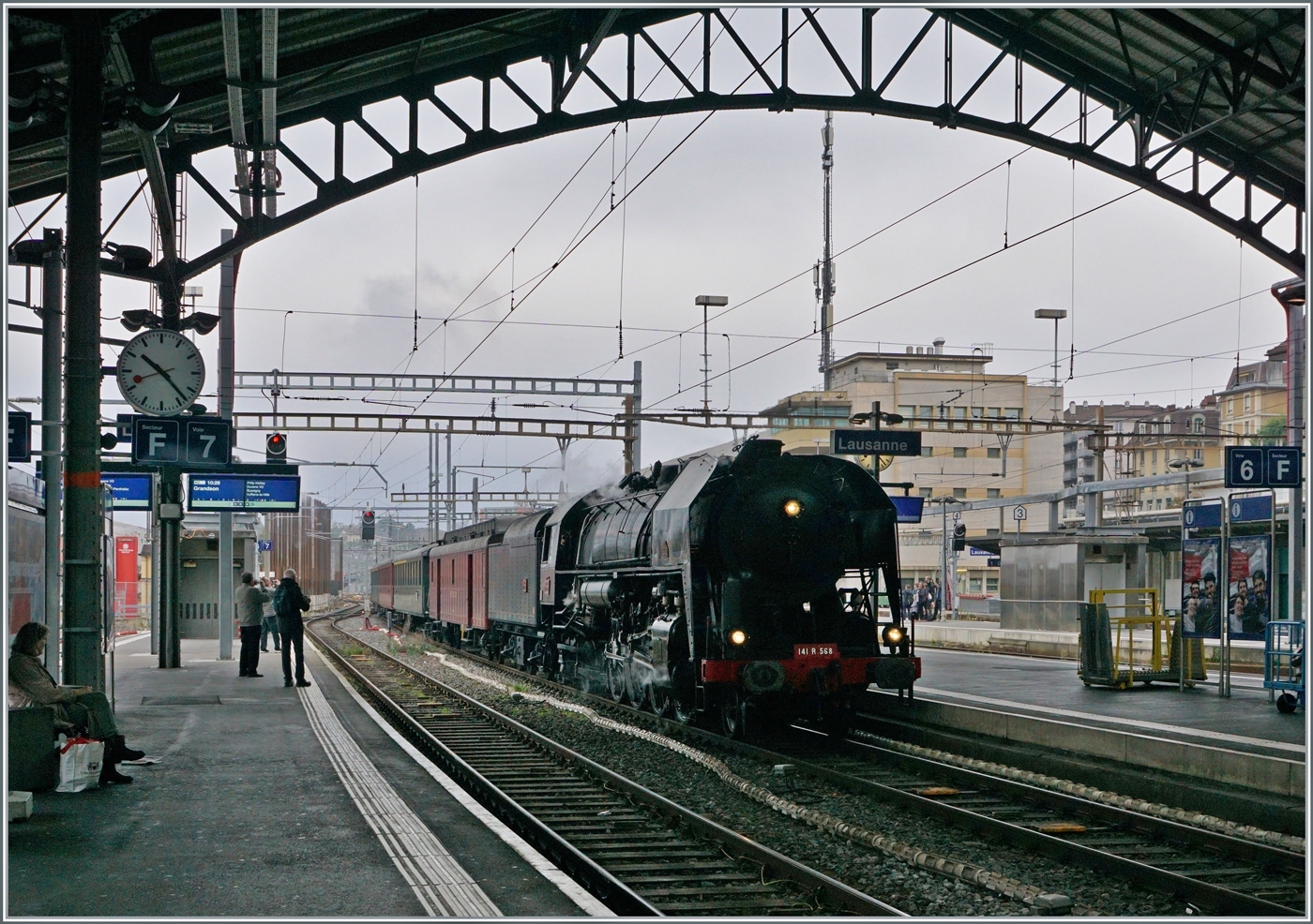 Die Ae 4/7 10997 ist mit den edlen Wagen "Le Diamant Bar" WRm 61 85 88-94 003-4 CH-IRIS und "Le Salon Bleu" ARmz 61 85 88-90 200-6 CH-IRIS unterwegs und macht in Lausanne einen kurzen Halt.