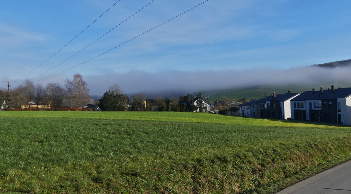 Herbstliche Stimmung im Hellertal mit Bodennebel am Nachmittag des 18.11.2022 bei Herdorf-Sassenroth.