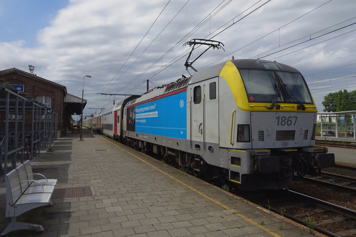 NMBS 1875 schiebt am 18 Augustus 2024 einer IC aus Oostende durch Antwerpen-berchem.