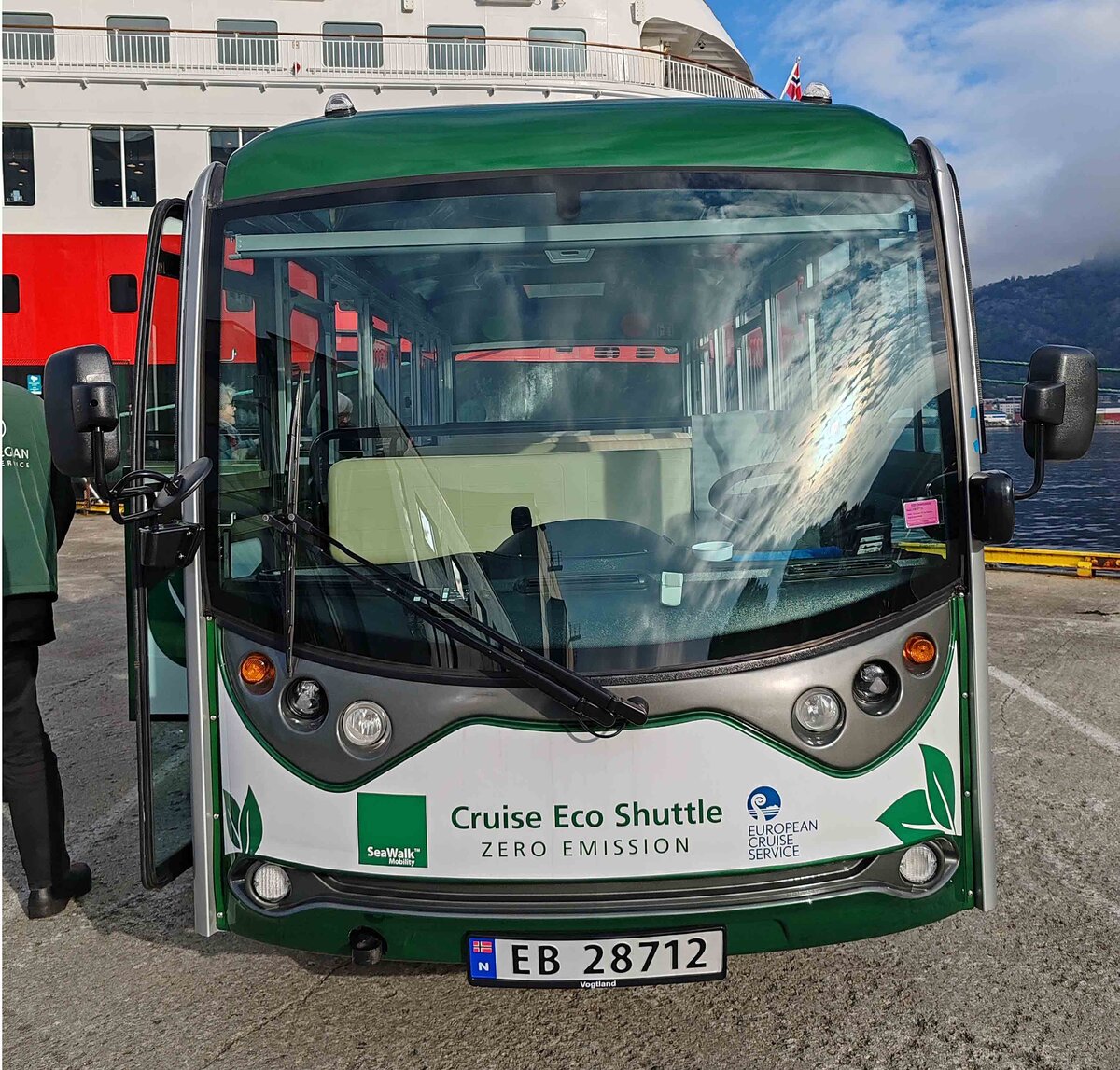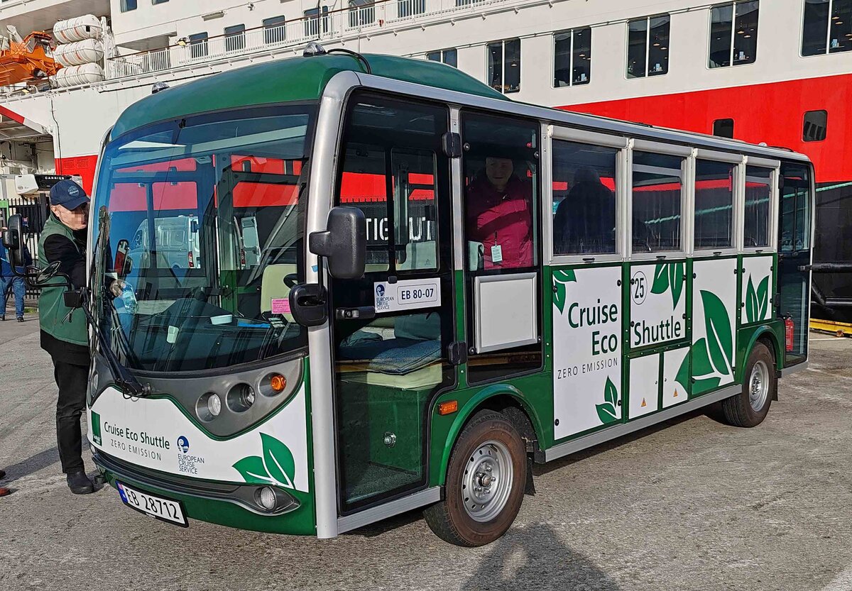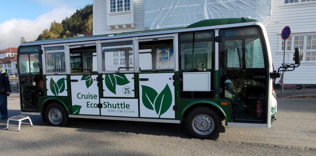 Cruise Eco Shuttle steht bereit für die Stadtrundfahrt in Bergen/Norwegen, 10-2024
