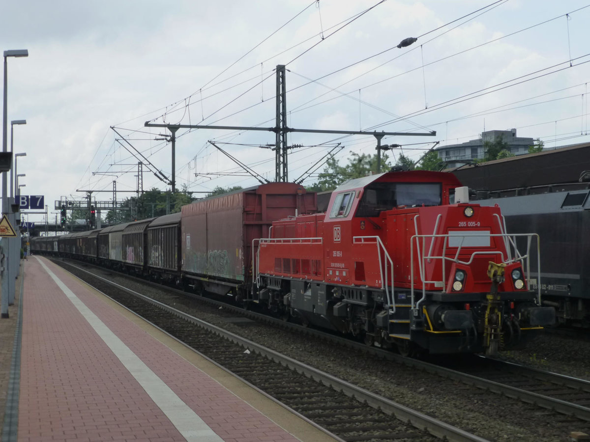 Gravita 265 009 mit einer bunten Mischung aus Güterwagen im ICE-Bahnhof Wilhlemshöhe, 3.9.15