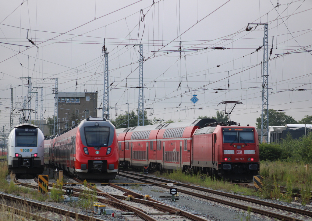 Das Sturmtief Xavier hat auch in Mecklenburg-Vorpommern den Bahnverkehr durcheinander gefegt so fuhr der RE 4310 nur Rostock-Schwerin,IC2212 von Koblenz nach Ostseebad Binz fiel komplett aus.Rostock Hbf 06.10.2017