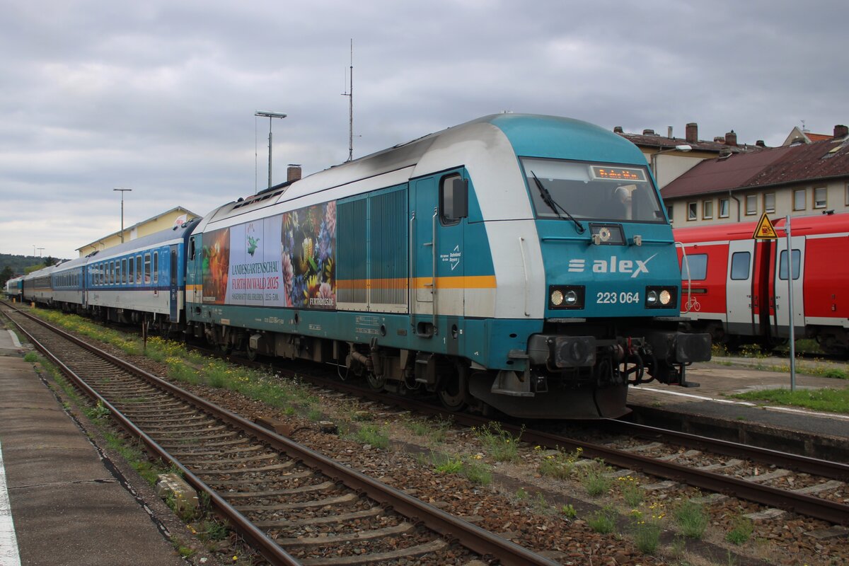 Hinten leider ein sehr trauriges Kapitel der Böhmischen Westbahn, die sehr zerstörte alex 223 066-2 "Herkules" (92 80 1223 066-2 D-DLB)....