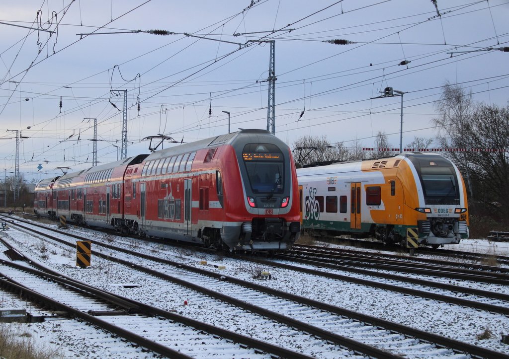 445 009 als RE5(Elsterwerda-Rostock)kurz nach der Ankunft im Rostocker Hbf.25.1.2019