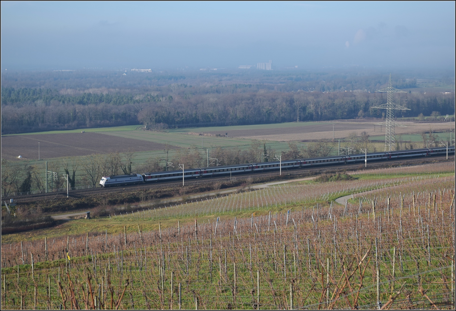 ICE 1  Basel  mit Triebkopf 401 073 auf dem Weg nach ebenda. Schliengen, Dezember 2018.