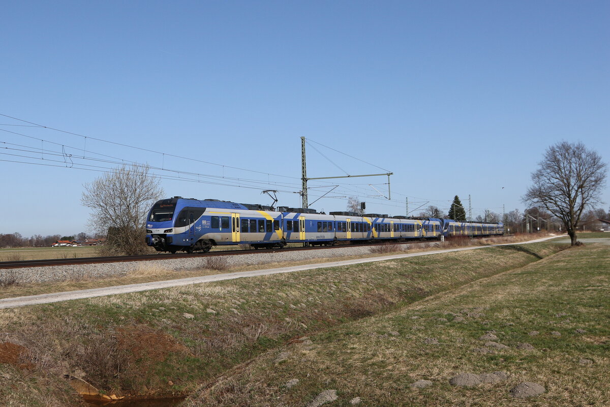 430 023 war am 18. Dezember 2025 bei Hufschlag in Richtung Traunstein unterwegs.