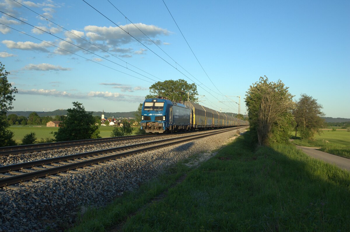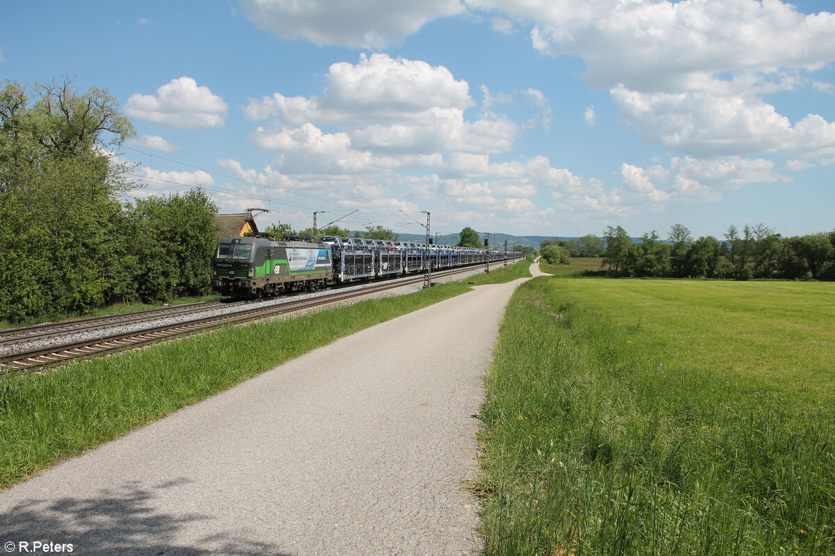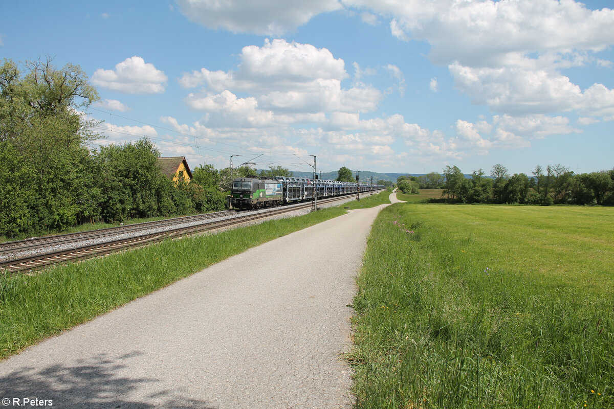 186 422-2 mit einem Containerzug bei der Netztrennstelle bei Bischofsheim. 15.05.15